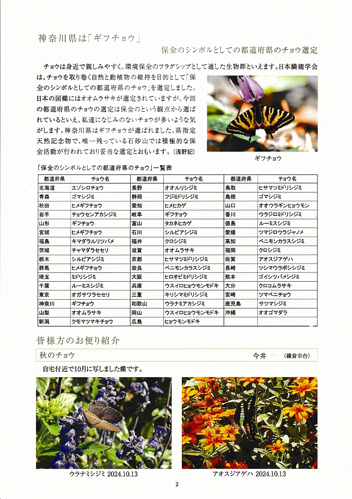 2025年 12月号 【 発 刊 巻 頭 御 挨 拶 】 (クリックしご覧ください) 都道府県のチョウ選定(神奈川県ギフチョウ)